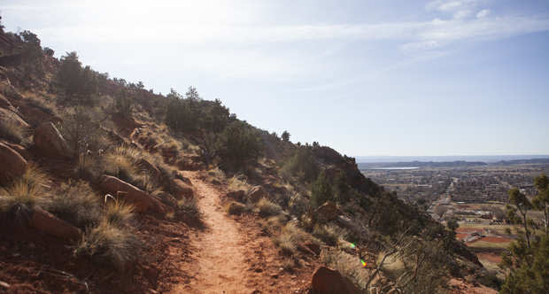 The trail takes you up the red rock rim north of Kanab. The first half of the trail is up a small canyon, and then it opens up on the rim where you’ll be in direct sun. Make sure to bring a hat, sunscreen and lots of water. The trailhead is on 100 East, north of Jacob Hamblin Park.